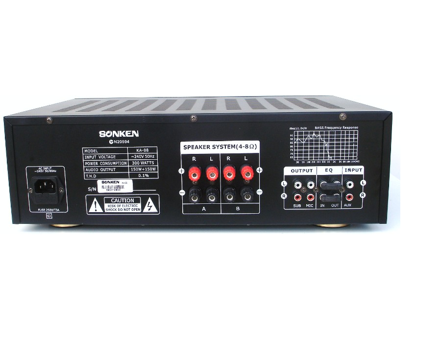 created with poor musical balancing. To avoid these situations ,the KA-08 has a MASTER ,BASS ,MID and TREBLE