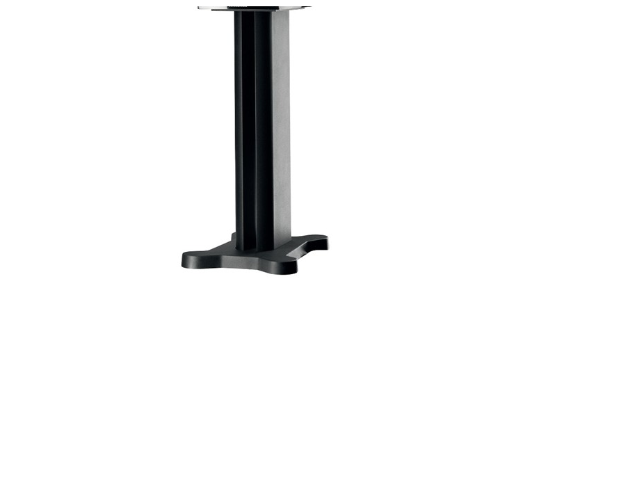 The stand is available either in all black or with silver columns and grey base and top. Floor spikes are included.